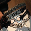 Bracelet Multi-cordon, avec une plaque love, un signe infini et des ailes.